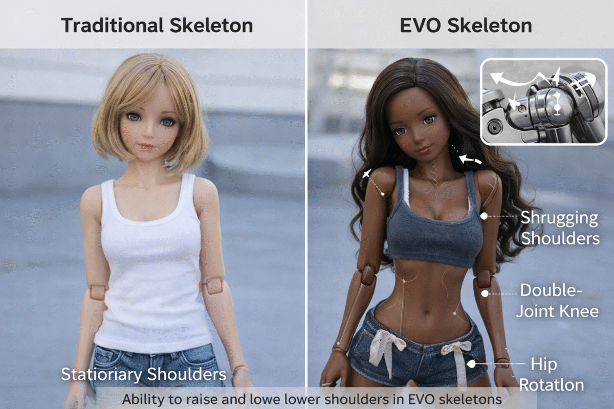 The skeleton is the hidden structure that determines how realistic a doll can move. While older dolls had limited articulation, modern EVO skeletons offer a huge upgrade in movement, realism, and posing ability.